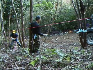 ウインチで斜面を登り右に移動してウインチダウンするセクション。道の崩壊した部分を通過するシチュエーションを想定。